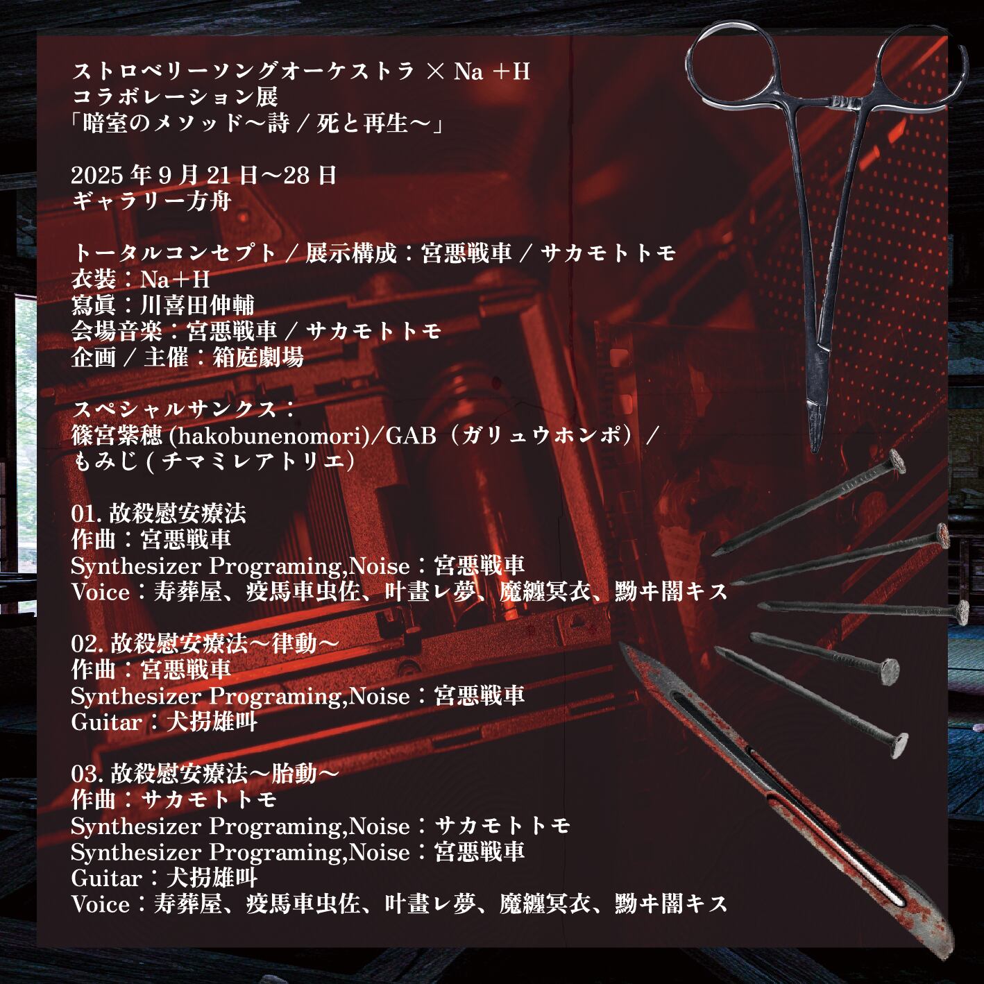 ストロベリーソングオーケストラ × Na+Hコラボレーション展「暗室のメソッド〜死/詩と再生〜」にて使用された会場音楽を収録したCD-R。
